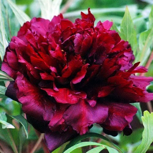 Великолепный пион Као древовидный способен достичь высоты 120-150 см. Его крупные густомахровые соцветия диаметром 20-25 см с желтой сердцевиной поражают удивительными оттенками рубина, пурпура и коралла. Обильно цветет в мае 8-15 дней, окутывая сад легким пряным ароматом.